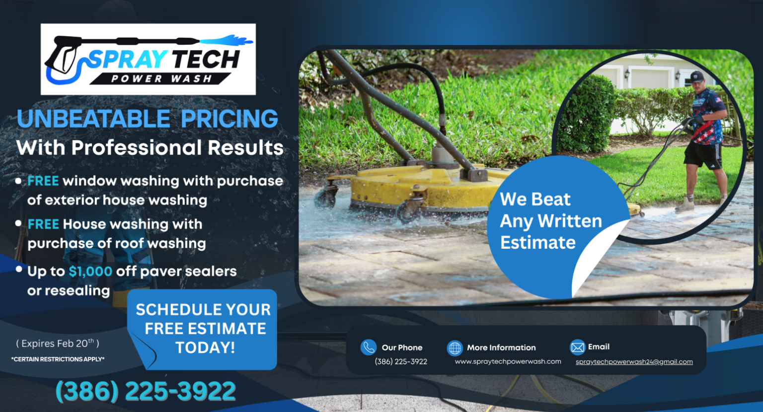 At Spraytech Power Wash, we specialize in high-quality exterior cleaning, paver sealing, and window cleaning to restore and protect your property. With years of experience in the industry, we take pride in delivering top-tier service with attention to detail, ensuring your home or business looks its best.